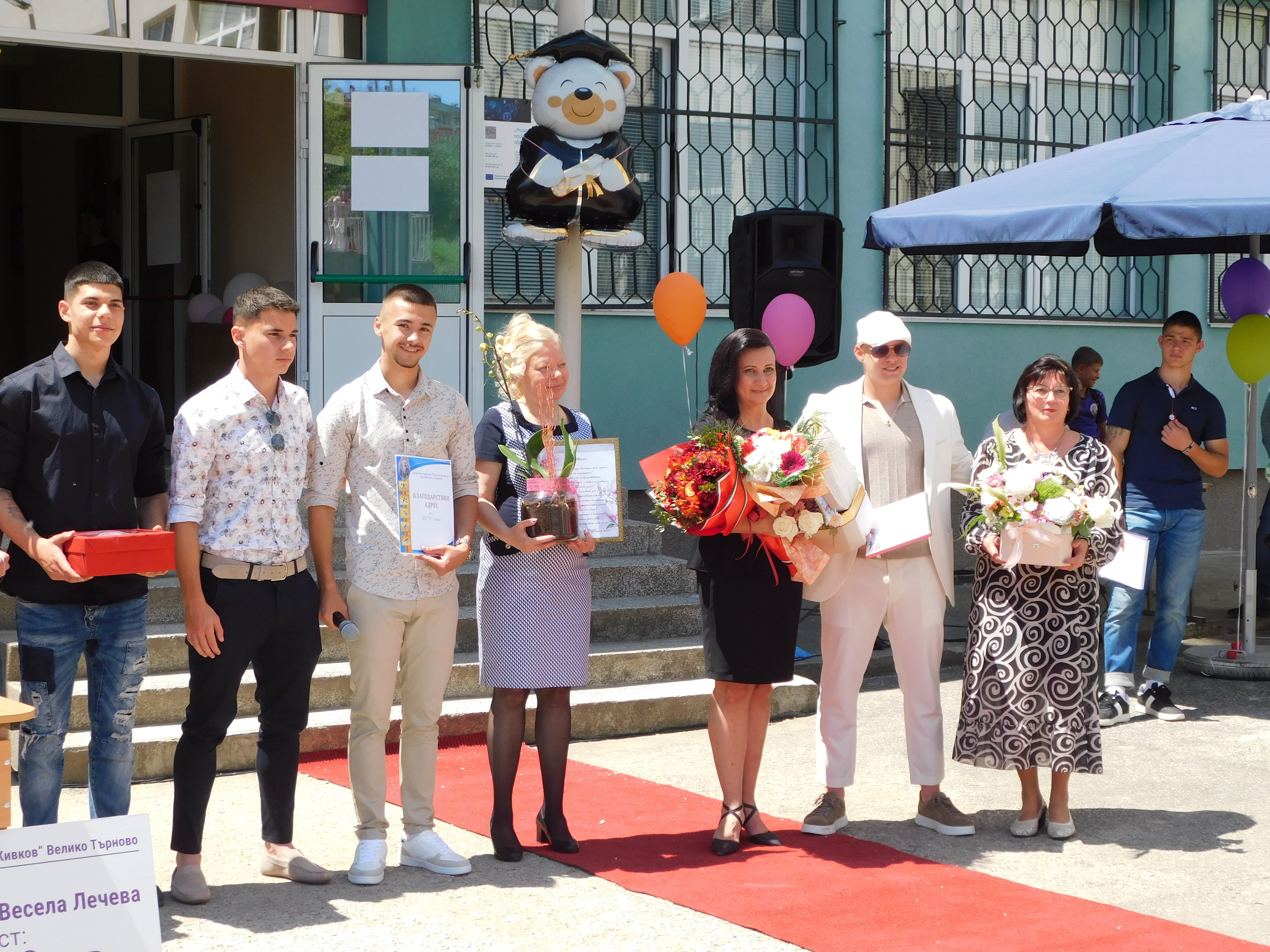 Приветствие към зрелостниците поднесе и кметът на Велико Търново д-р инж. Даниел Панов. „Медалите и отличията, които носите, са гордост и за вашите учители, треньори и родители, които са ви подкрепяли. Постиженията са факт и те говорят много. Благодаря на г-жа Михова и целия екип за всичко, което правите в годините след неговото възстановяване. Пожелавам ви много успехи и следвайте примера на тези шампиони, които училището е създало“, каза Даниел Панов.