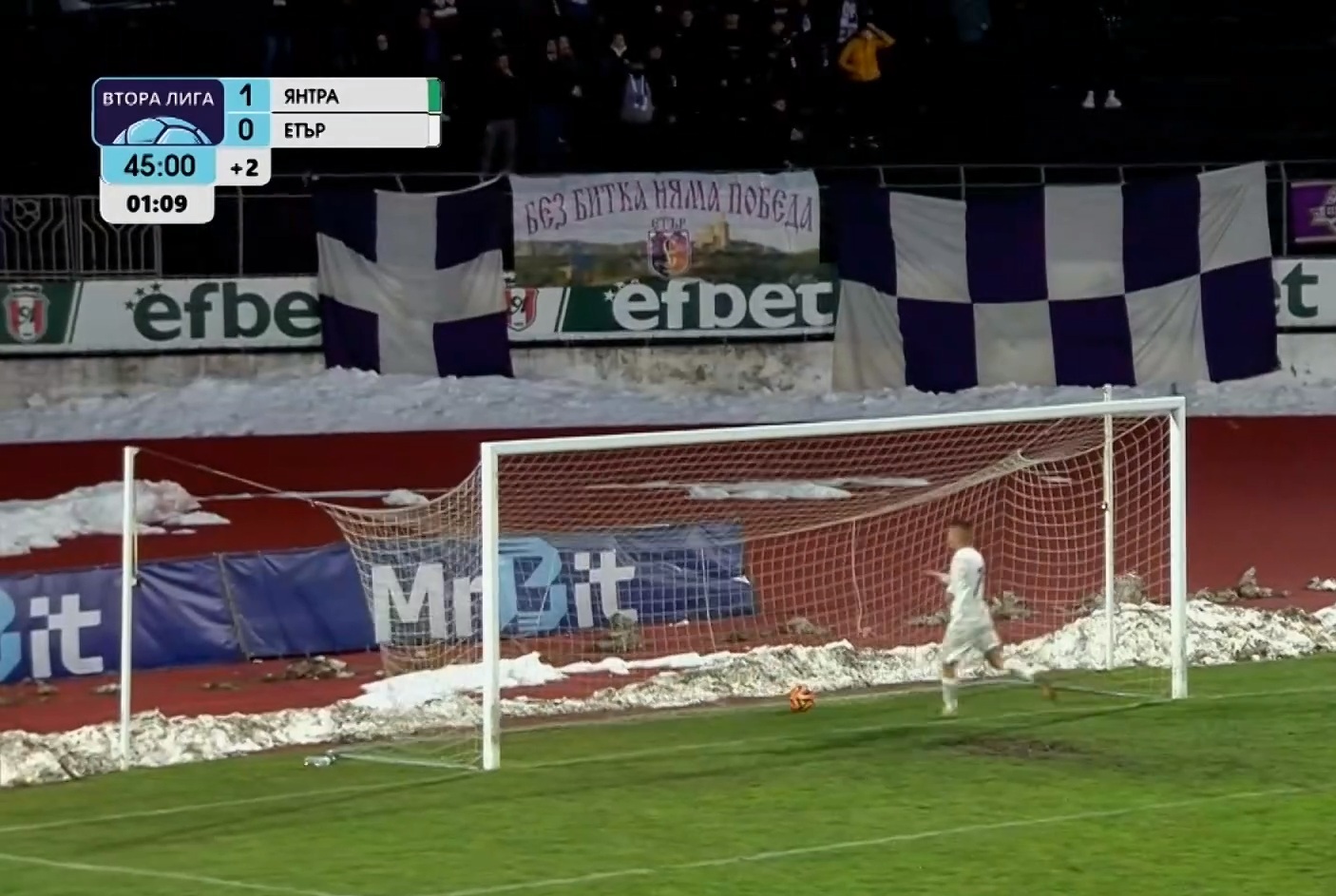 „Етър“ опита натиск след почивката и в 51-ата минута можеше да намали, но първият удар на Мартин Николов бе спасен, а после той бе задържан и съборен, но и този път дузпа не последва. Вместо това след асистенция на вратаря Василев (!) последва грешка в отбрана и пак Милчо Ангелов вкара за 3:0.