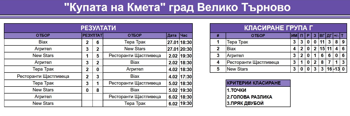 Днес са последните две срещи от груповата фаза в зимния турнир в ДКС “Васил Левски” за Купата на кмета на Велико Търново. И двата мача са от последната група Г.