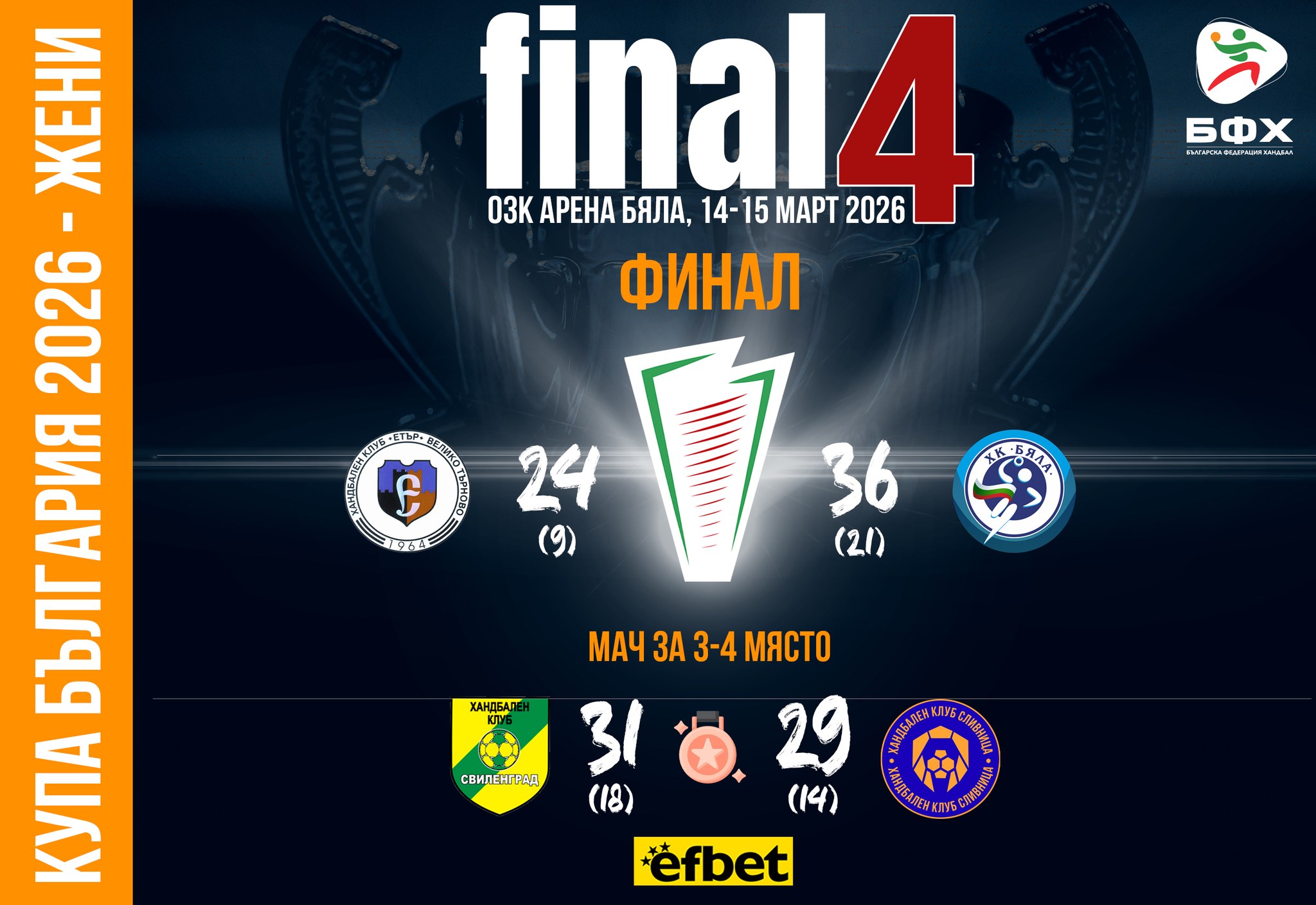 Женският хандбален тим на “Етър-64” стана сребърен медалист в турнира за Купата на България. На финала, игран в Бяла, великотърновски отстъпиха на домакините с 24:36 (9:21).