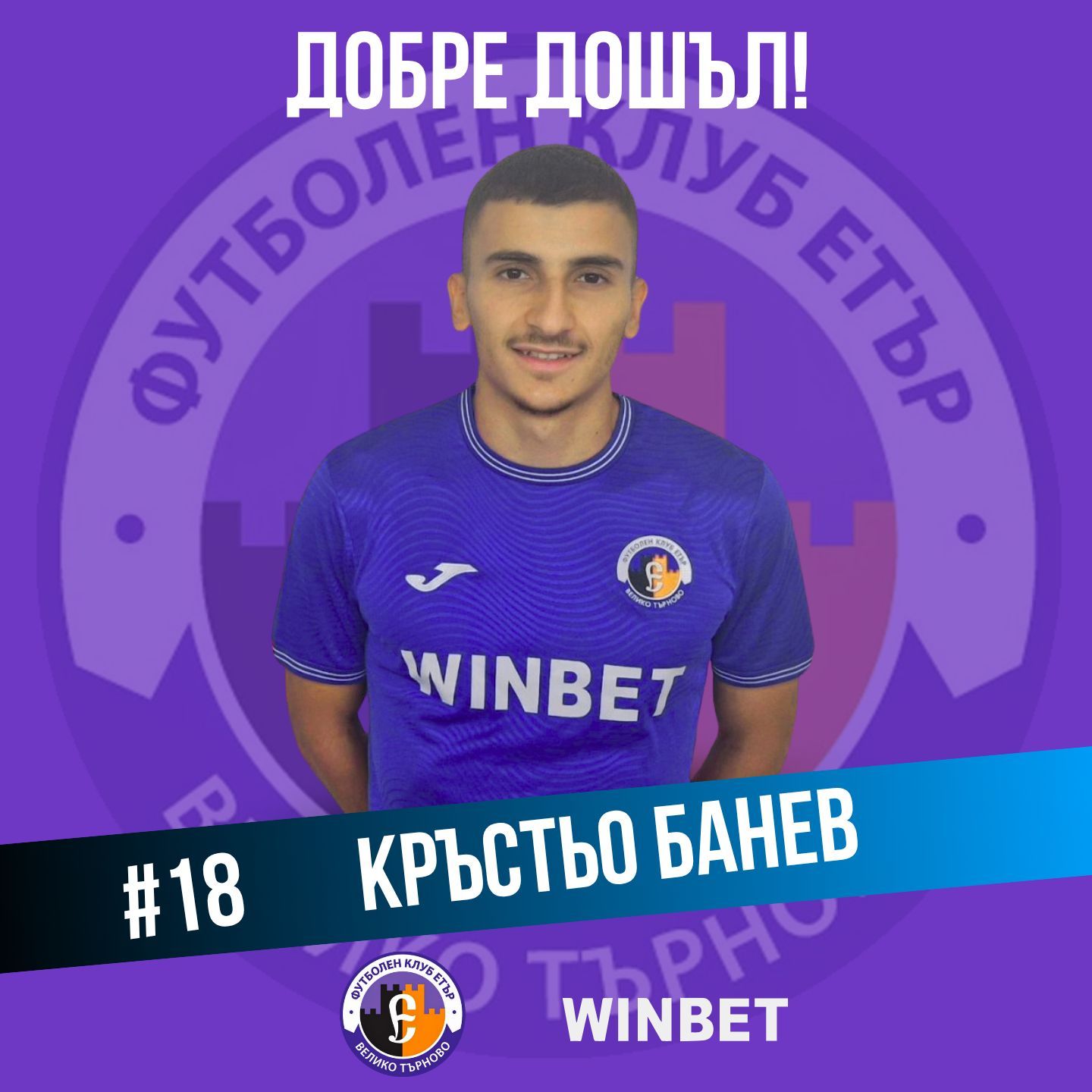 Кръстьо Банев е поредното ново попълнение на „виолетовите“ за новия сезон. Той идва като преотсъпен от Локомотив (Пловдив) за една година. В Етър ще носи номер 18.