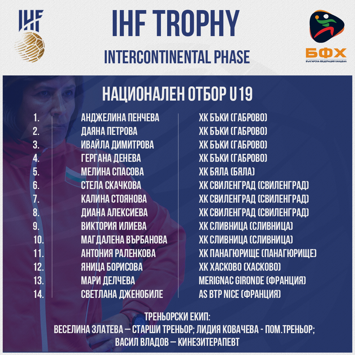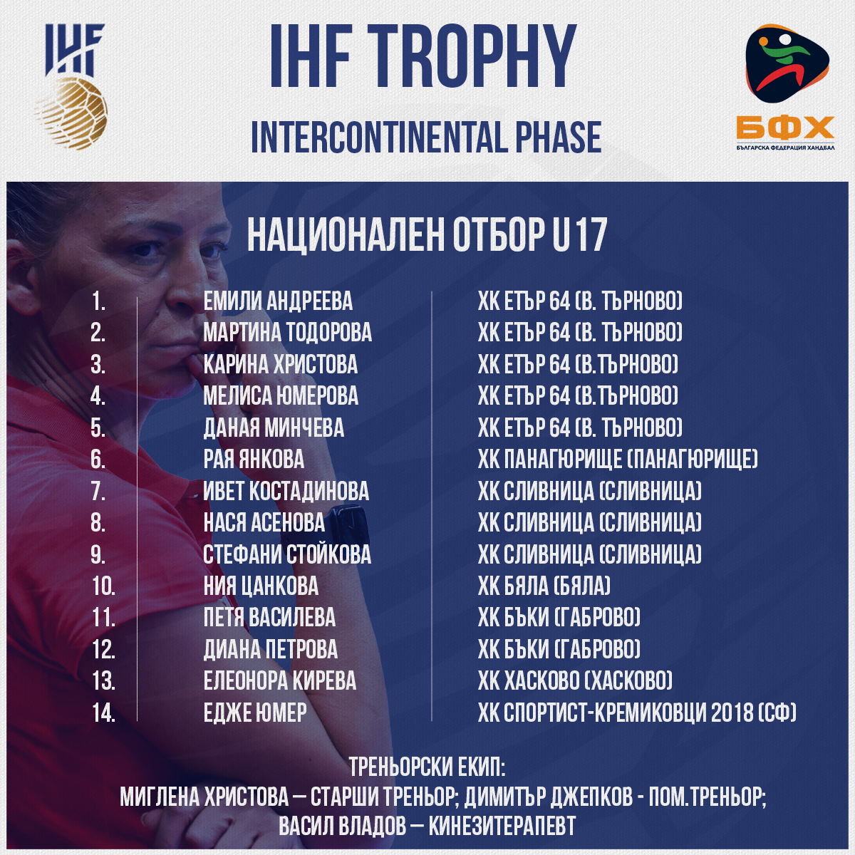 В резултат на тази промяна, програмата при 17-годишните бе коригирана. Останалите пет отбора ще играят по системата „всеки срещу всеки“. В състава на България, воден от Миглена Христова, са включени пет състезателки на “Етър-64” – Мартина Тодорова, Карина Христова, Емили Андреева, Мелиса Юмерова и Даная Минчева.
