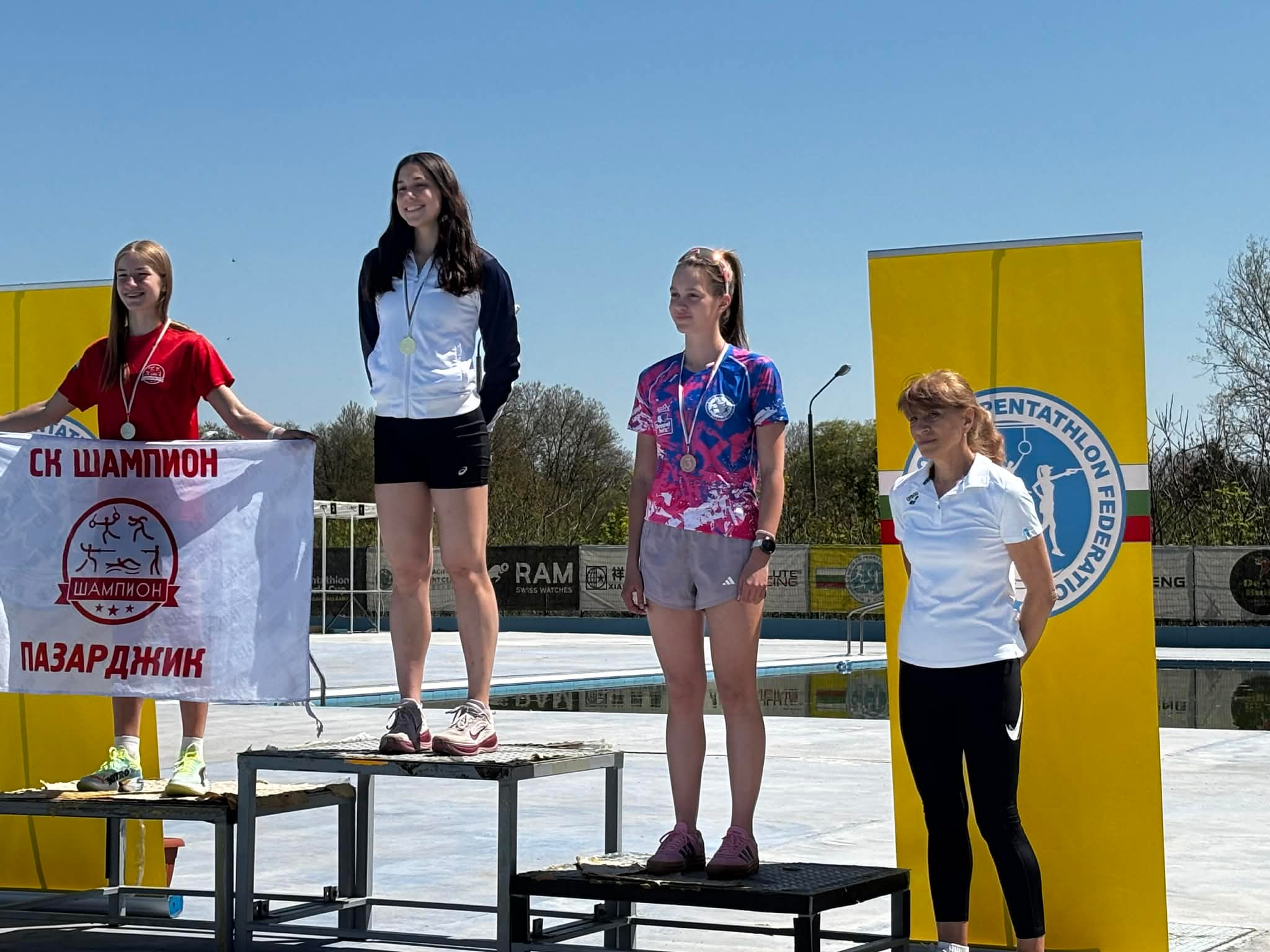 Антония Начева отново показа класа и стана шампион, както при девойките, така и при жените. В дисциплината обстикълс, която се оказа непосилна за голяма част от девойките, Антония финишира с първо време и личен резултат. В плувната дисциплина, за първи път преодоля границата от 1 минута на 100 м св. стил – 59,91 сек. и бе недостижима. На фехтовката не й се получиха всички боеве, както ни се искаше, но това не попречи да оглавява класирането след трите дисциплини. В комбинираната дисциплина 5х600 м бягане с 5 стрелби Антония отново бе над всички. Единадесетгодишната Цветелина Коева участва на част от дисциплините. На 100 м св. стил финишира с 8-мо време, а на фехтовката направи 9 туша, които й определиха 15-то място.